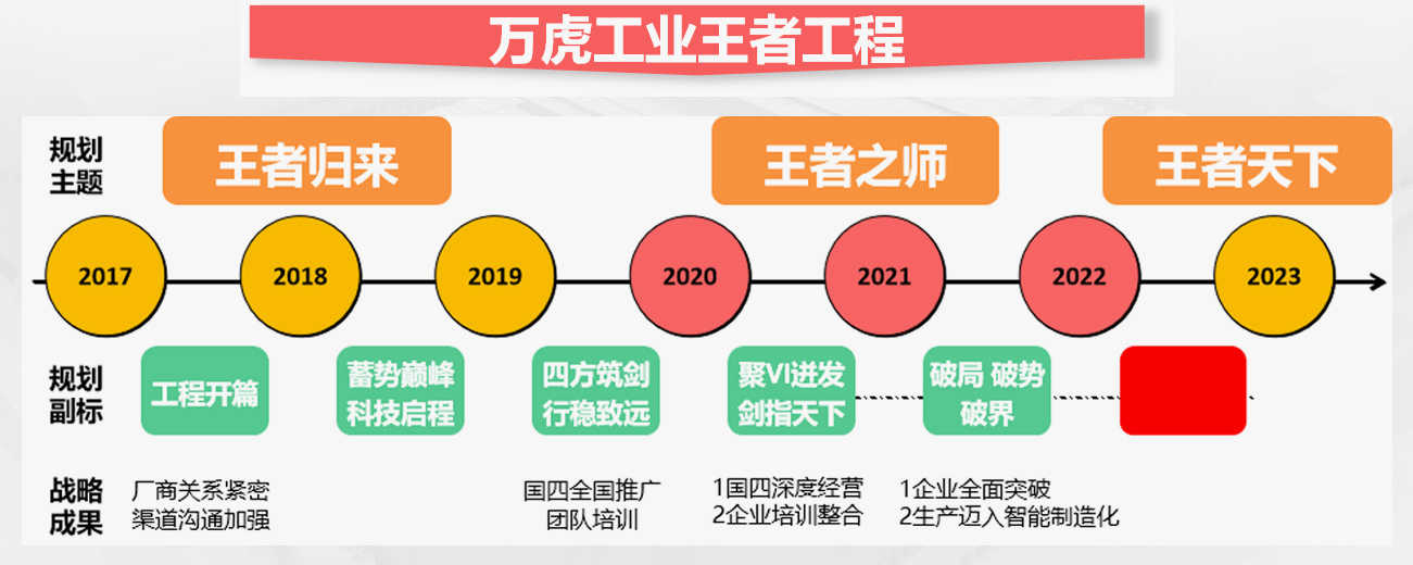 為應(yīng)對(duì)未來(lái)市場(chǎng)發(fā)展變化,萬(wàn)虎工業(yè)積極部署未來(lái)發(fā)展戰(zhàn)略,并在基礎(chǔ)投資上進(jìn)行更進(jìn)一步的投入。通過(guò)王者系列工程打造,確定萬(wàn)虎未來(lái)在營(yíng)銷(xiāo)管理、終端培訓(xùn)以及品牌提升方面的優(yōu)勢(shì)。